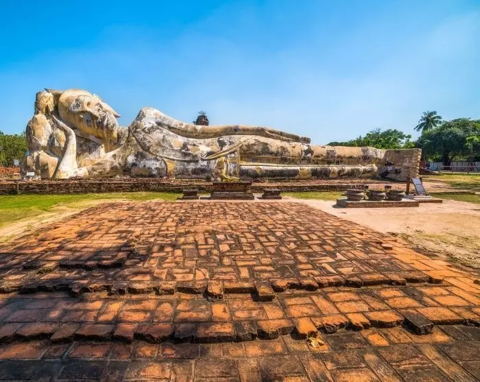 The last visit of the day is to the ancient monastery, Wat Lokaya Sutha. There is not much left here other than the remains of the old floors, walls and columns. The major attraction of the site is the 37-metre-long reclining Buddha with the peaceful smile.
