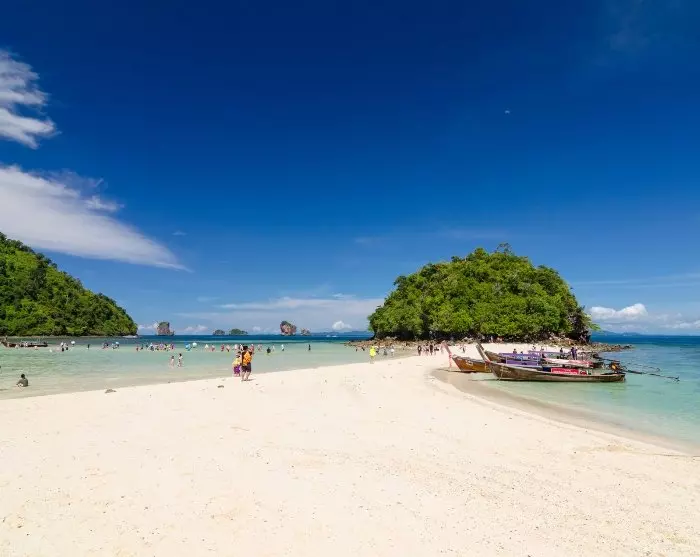 After about 30 minutes, you will arrive at Koh Poda, one of the most beautiful islands in the Andaman Sea. Known for its pristine beaches with soft, white sand meeting the crystal-clear water, this island is a haven for snorkelling among tropical fish, swimming, or simply soaking up the sun. You might also retreat beneath one of the shady trees to enjoy the breathtaking views. For that feeling of having the island to yourself, stroll further along the beach to discover your own little, secluded slice of paradise. The further you wander, the more of a Robinson Crusoe vibe you’ll capture.