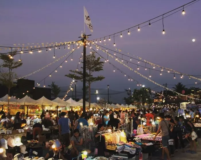Dinner is served at the hip market, Chillva, located a short drive away. Here, you can taste the market’s delightful local specialities, such as juicy satay skewers, grilled lobster, delicious sushi, and the dessert sticky rice with mango. Have a seat on a plastic stool and enjoy the atmosphere as live music often completes the mood.