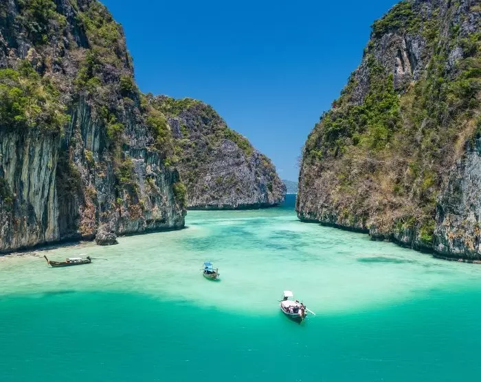 Even further east are the heavenly Phi Phi Islands, which can be experienced on a full-day excursion, giving you time to bathe, go snorkelling, and relax on the alabaster sandy beaches.