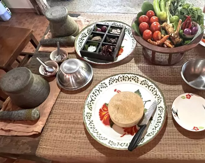 There’s time to enjoy a quiet morning until check-out. You’ll then be picked up from the hotel and driven to the village of Bandoo in Hang Dong Province, a 20–30-minute drive from Chiang Mai. You’ll make your way to a traditional teak house that is around 150 years old. The house is owned by the Raunkaew-Yanon family, which has played a major role in shaping and preserving the Lanna culture in the area.