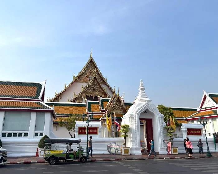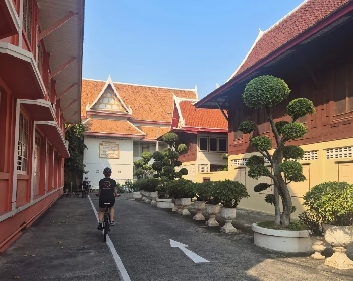 After a short briefing and adjustment of your bicycle, you set off together with a skilled and experienced guide. The route is flat and easy, making it suitable for most people. You cycle through the popular backpacker area, Khaosan Road, and on through small alleyways and past small canals. You continue along the Chao Phraya River to the Rama VIII Bridge, where you cross the river into authentic, western Bangkok, where you’ll visit ancient temples and experience local life up close. The excursion continues along the large canal, Bangkok Noi, through small, quiet streets and past a local village, where the locals will send happy smiles and waves your way. You’ll cross a small bridge, taking you over to the other side of the canal, where you’ll cycle past Buddhist temples and Thonburi’s train depot. You’ll then take the ferry back to lively, eastern Bangkok, where you’ll cycle past the Grand Palace. You’ll park your bike and go for a walk in the lovely nearby Saranrom Park, which was once only used by the royal family. Back in the saddle, you’ll cycle past a fragrant food market. You arrive at the Giant Swing, which is the last stop of the tour and one of Bangkok’s popular landmarks.