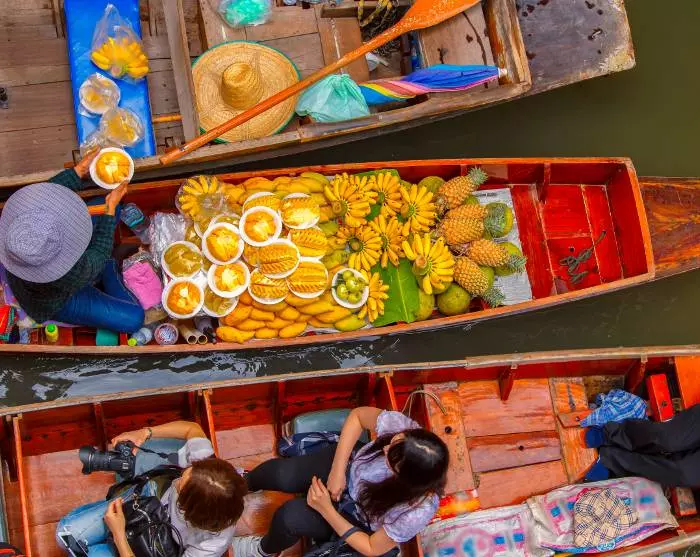 After walking all over Bangkok in the tropical heat and noisy traffic, there will almost certainly be moments when you dream of greener, quieter places. Might we suggest a visit to Lumpini Park and Benjakitti Park? You can also choose to head over to the western side of the river, where you’ll find yourself in a completely different world without skyscrapers and tooting tuktuks. You’ll encounter a more authentic Bangkok here, and a maze of canals, where houses stand on stilts and postmen make their deliveries by boat.