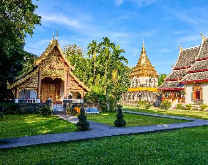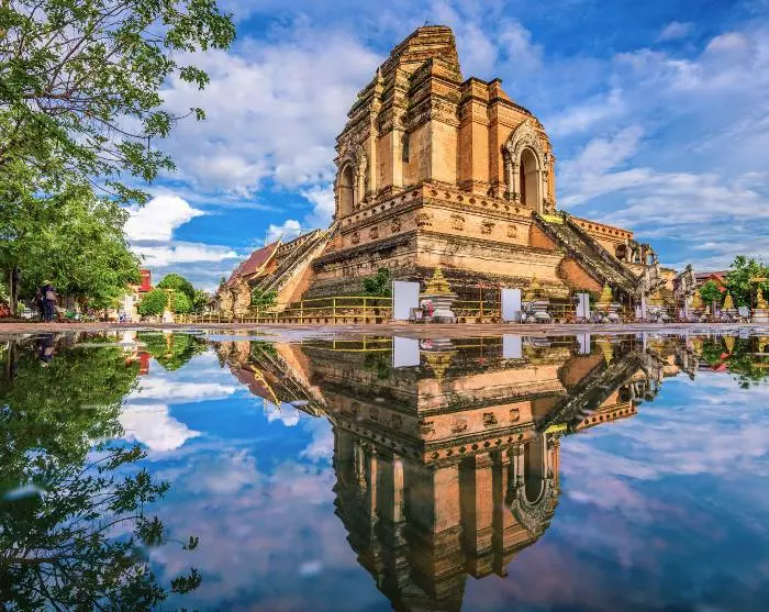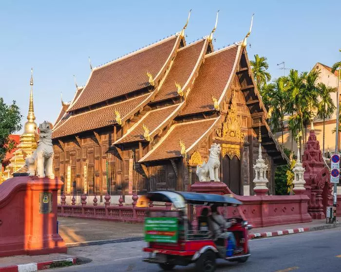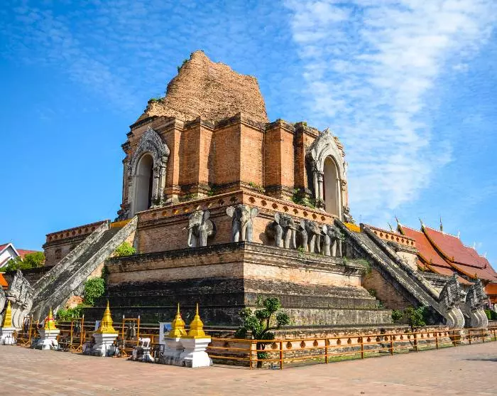 You’ll be driven to our partner’s office, where you will be kitted out with a bicycle and bicycle helmet. After a quick briefing, it’s time to hit the pedals and experience the charm of the city. The route is flat and easy, making it suitable for most people. You’ll cycle through the small, quiet streets of Chiang Mai to the fine temple Wat Inthakhin Sadue Mueang, known for its 700-year-old white Buddha statue. The bike ride continues past the Three Kings monument to Tha Phae Gate, the city gate where traders brought their wares into the city in its heyday. Here, the guide will tell you all about Chiang Mai as a former trade centre. You’ll continue to the nearby Somphet Market, where you have time for a browse and to soak in the local atmosphere. You’ll also have the opportunity to taste the colourful fruits and sweets. Chiang Mai’s oldest temple, Wat Chiang Man, then awaits. It is here that the 1,800-year-old Crystal Buddha and the 2,500-year-old Marble Buddha are kept. Finally, you’ll visit the city’s largest and most iconic monument, Wat Chedi Luang, once home to the Emerald Buddha, which is now housed in Wat Phra Kaew temple in Bangkok.