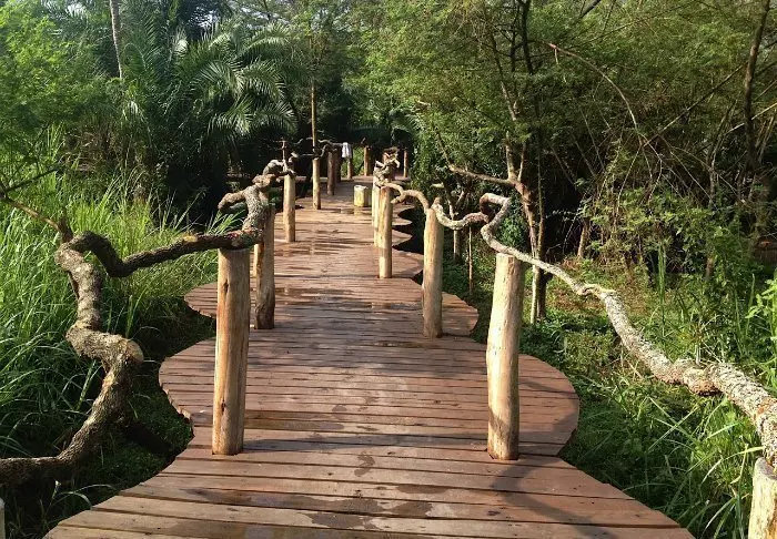 At the straw-strewn restaurant and bar, you can enjoy delicious home-cooked food or a lovely drink as you admire the picturesque nature and the beautiful little natural lake.