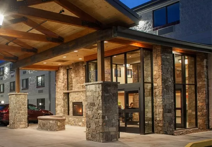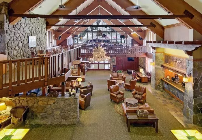 The hotel is built in typical lodge style and offers 132 rooms, renovated in 2024. The rooms are furnished in a modern style in warm and earthy shades, adding a cozy atmosphere to your stay. In addition to a desk, TV, mini-fridge and coffee machine, there is an en-suite bathroom with a hairdryer and a small selection of free toiletries. The rooms also have air conditioning and free Wi-Fi.