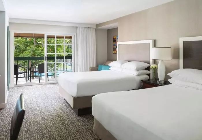 Catamaran Resort & Spa is surrounded by palm trees and large plants, with a tropical atmosphere all around it. This feeling is in many of the 310 modern rooms, which are furnished with exotic prints and colours, drawing inspiration from the Polynesian style. Each room is fitted with modern facilities, such as TV, Wi-Fi, a safe, mini-refrigerator, as well as an iron and ironing board. The bathrooms feature a hair dryer, bath robes, and a range of complimentary toiletries. Each room has its own balcony or porch, perfect for concluding your day in the evening breeze from the Pacific Ocean.