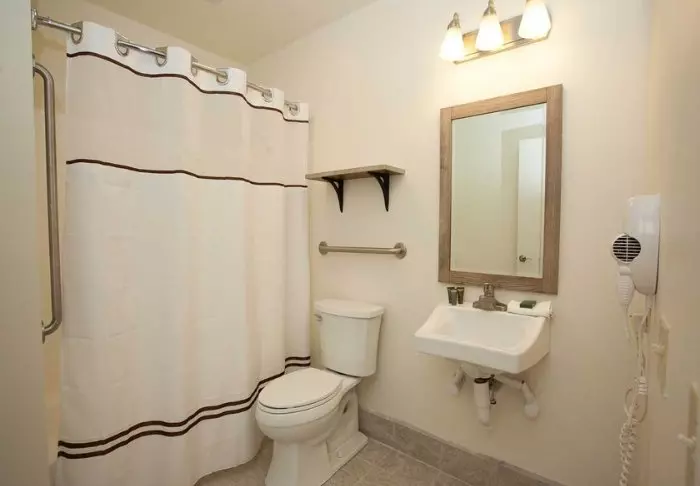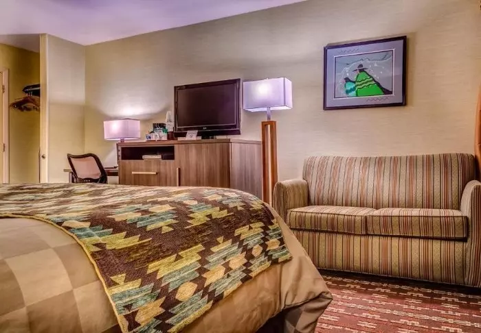 Red Feather Lodge consists of both a hotel section and an older motel section. You will only be offered a room in the section of the hotel that was renovated in 2019. This is evident in the attractive rooms, which offer adjustable air conditioning/heating, a coffee machine, a mini fridge, a microwave and free Wi-Fi. All rooms have their own bathroom with a hair dryer.