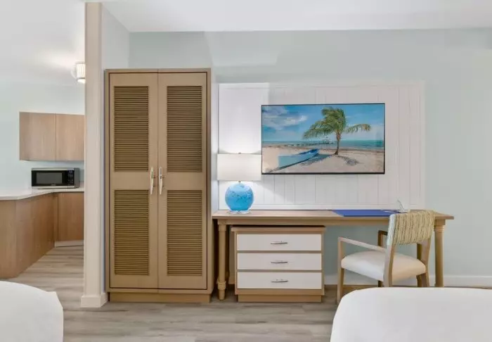 Blue Flamingo Resort Key West offers 100 light and airy rooms in a contemporary style. The rooms feature beds and wall cladding made from recycled wood, which ensures a pleasant and relaxed atmosphere. All the rooms have a TV, Wi-Fi, coffee-maker, minibar, air-conditioning and an en suite bathroom with hairdryer and bathrobes.