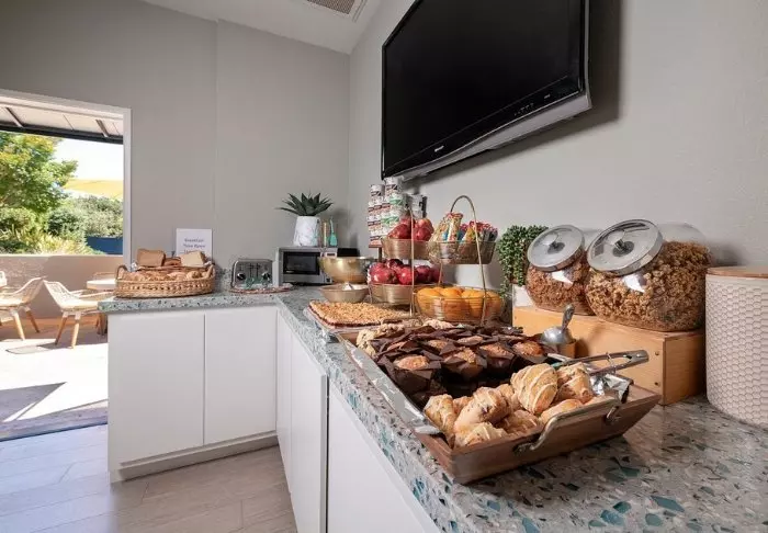 Before heading out for today’s adventures, ease the worst of your hunger by stopping by the hotel’s breakfats room, which offers a continental breakfast.