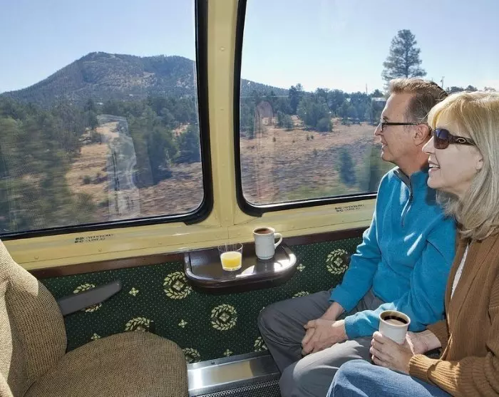 The excursion includes: Return train ride between Williams and Grand Canyon plus national park fee/admission