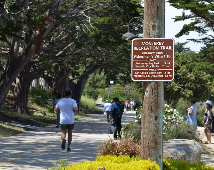 During the summer months, you can take the free shuttle bus that runs between Fisherman’s Wharf, Cannery Row and the Monterey Bay Aquarium.