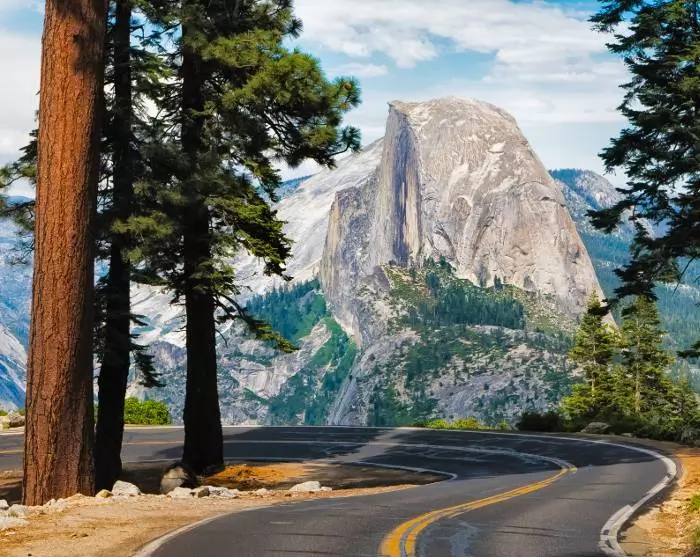 On the last stretch of the way into Yosemite Valley, you follow the roaring Merced River while enjoying views of the massive, glacier-formed mountains, waterfalls and meadows.