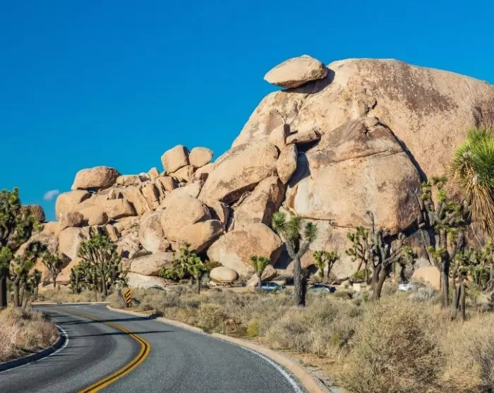 In Palm Springs, you’ll drive through the city in the desert with its palm tree-lined streets and alleys. The city is a true paradise for wealthy Americans, who have their holiday homes here. Celebrities such as Elvis, Marilyn Monroe, Frank Sinatra and Dean Martin are just some of those who have had a house in the city. The properties can still be seen (from the outside) to this day. From Palm Springs, you can choose to continue to Joshua Tree National Park. The national park offers beautiful views of the desert landscape stretching far into the horizon. The rugged landscape stands as a beautiful contrast to the green cacti and blue sky.