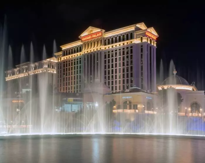 If you arrive in the evening, you’ll be able to see the bright column of light from the Luxor Hotel shooting into the air from a long distance away. The light is said to be visible more than 440 km away – and even from space.