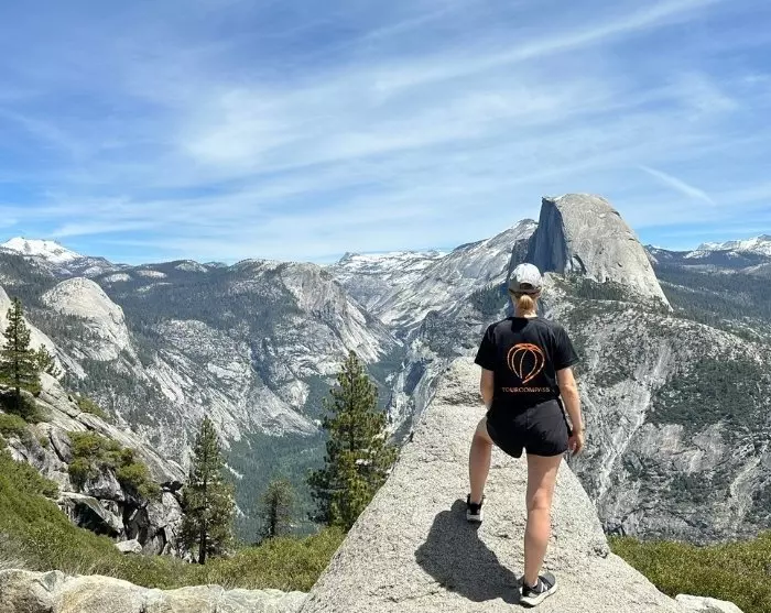 During the summer months, when the snow has melted, Glacier Point is one of the vantage points that you should not miss out on. You can drive up here by car, and you can also book a bus ride here (is booked directly in the park on a first-come, first-served basis or via pre-booking by telephone, which you can read more about here). If you are up for a hike down from the vantage point, you can also take a bus up to the vantage point and hike down via the Four Mile Trail.