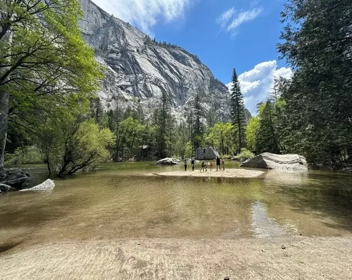 In Yosemite Valley, it is also possible to rent a bicycle, and you can use the paved cycling paths to ride from one waterfall to the next, while you simply enjoy the sight of the huge rock walls and trees around you. A good place to enjoy a snack is at the small stretch of sand at Swinging Bridge Picnic Area, where you have a view of the waterfall Yosemite Falls.