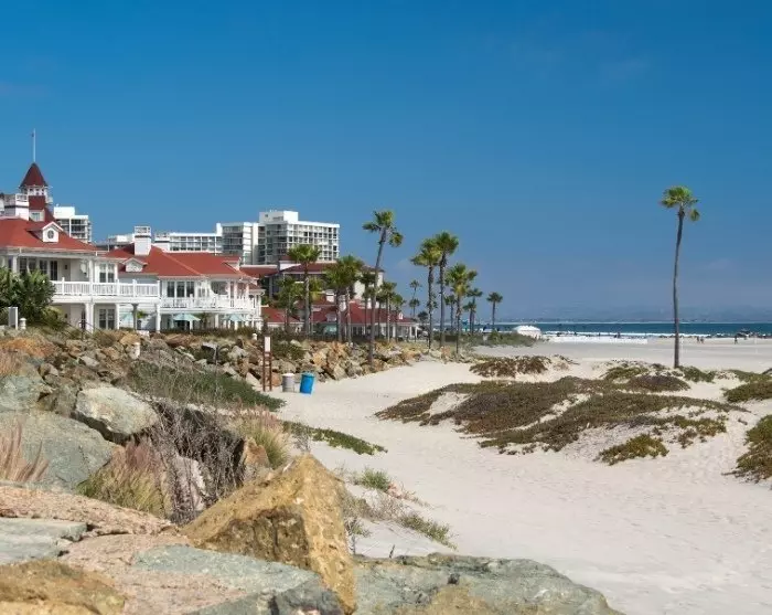 From Coronado Island, you can enjoy the most beautiful view of San Diego Downtown, and the cosy peninsula is, among other things, known for its beautiful beaches and the historic Hotel Del Coronado, which has been used in movies starring celebrities such as Marilyn Monroe.