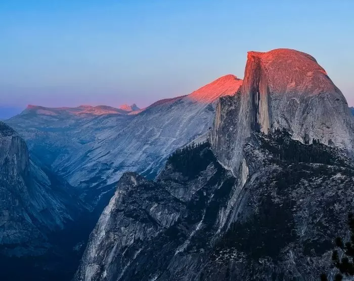 In the summer months, when the snow has melted, Glacier Point is one of the vantage points you simply mustn’t miss. You can drive up here by car and you can also book a bus trip here (booked at the park on a first-come, first-served basis). If you’re up for a hike from the vantage point, you can also take a shuttle up and hike down via the Four-Mile-Trail. From Glacier Point, you’ll also enjoy a very unique sunset – the moment when the sun casts an orange glow on the massive Half Dome mountain.