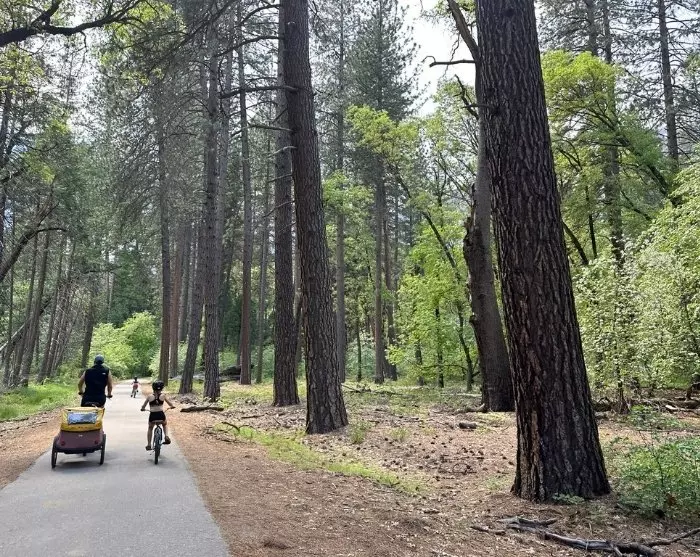 It is also possible to rent a bicycle in Yosemite Valley, so you can cycle around to all the nice places in the valley itself. A good place to enjoy a snack is by the small stretch of sand at the Swinging Picnic Area, overlooking Yosemite Falls.