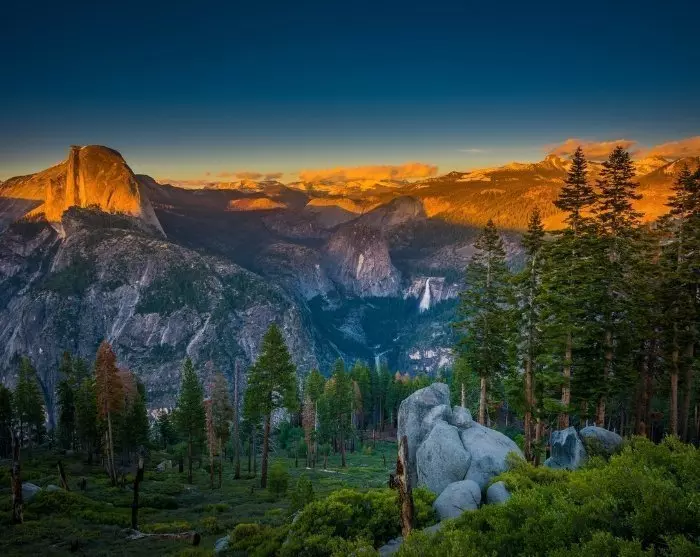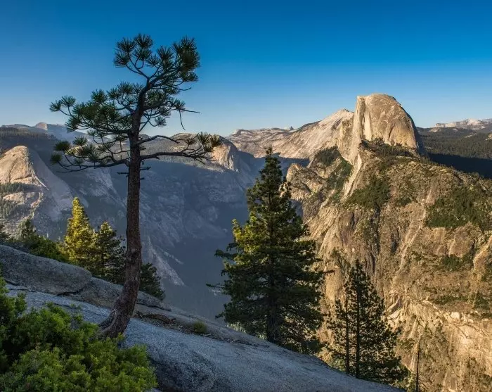 Many people also choose to end the day at Glacier Point with a sunset over Half Dome Mountain, as darkness and calm descends over the park. If you stay until nightfall, you’ll experience an incredible starry sky opening up above you here at an altitude of 2,200 metres.