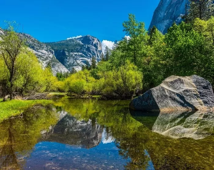 It is possible to rent a bicycle at the Welcome Center and explore the little nooks and crannies of the Yosemite Valley, cut through by the icy Merced River, at a leisurely pace.