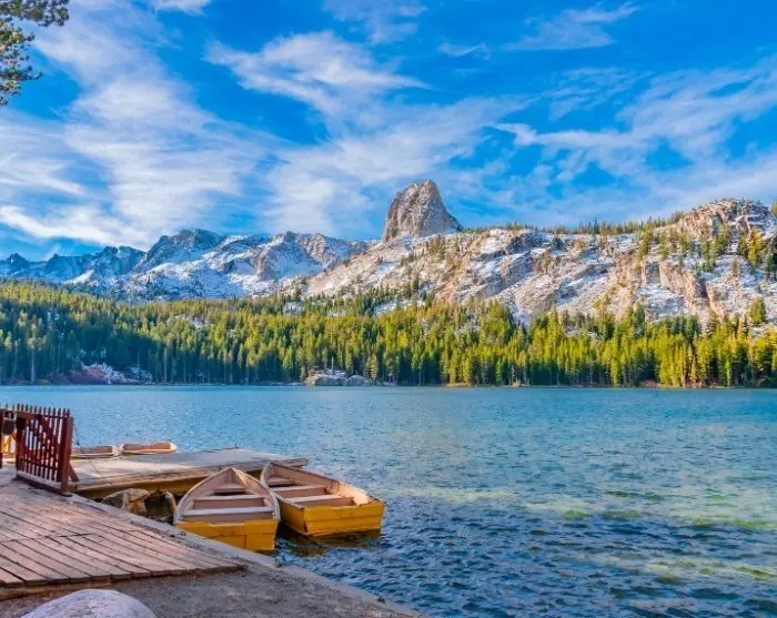 After a long day in the car, you arrive at Mammoth Lakes, where crystal-clear lakes and fresh mountain air await you.