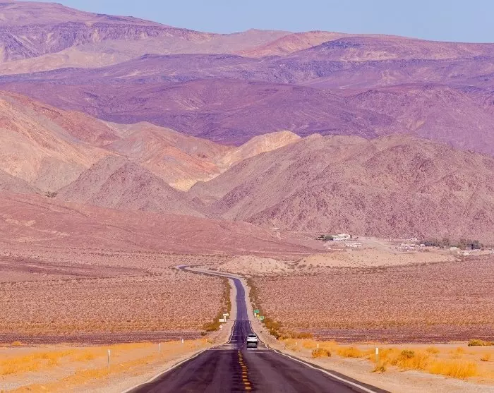 You can choose to take a scenic detour through one of the US’ largest national parks, Death Valley, which welcomes you with temperatures above 50°C, as well as beautiful, barren landscapes.