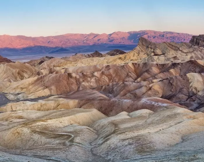 Make a stop at the iconic viewpoint, Zabriskie Point, where you’ll enjoy a fabulous view of the beautiful erosion mountain landscape in the foreground and the often snow-capped Panamint Mountains in the background. Also visit the lowest point in the US: the Badwater Basin salt flats, which are 86 metres below sea level.