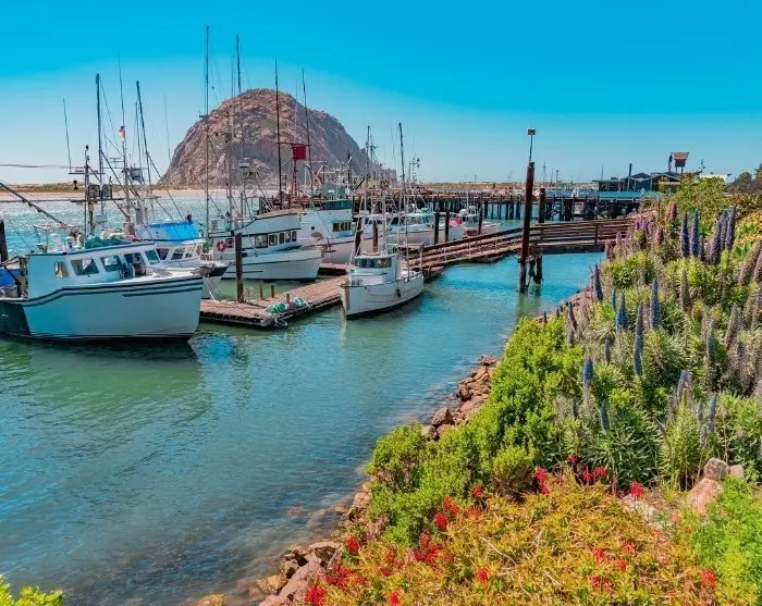 On the southern section of the route, you’ll come to the coastal town of Morro Bay, where the pace is slow, sea lions peek out from between the kayaks and fishing boats, and where there’s always a view of the town’s landmark – the rock formation, Morro Rock.