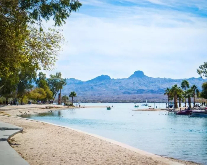 When you arrive at Lake Havasu, you’ll soon discover that the large lake is the pride of the locals. Lake Havasu was created by the Colorado River, which runs through the city, and a wealth of water sports are to be found here. The city’s landmark is the original London Bridge from the 1830s, bought here in 1968 by the tycoon Robert B. McCulloch, who had it dismantled. The bridge’s facing stones were removed, with each numbered before being shipped across the Atlantic, where the bridge was rebuilt.