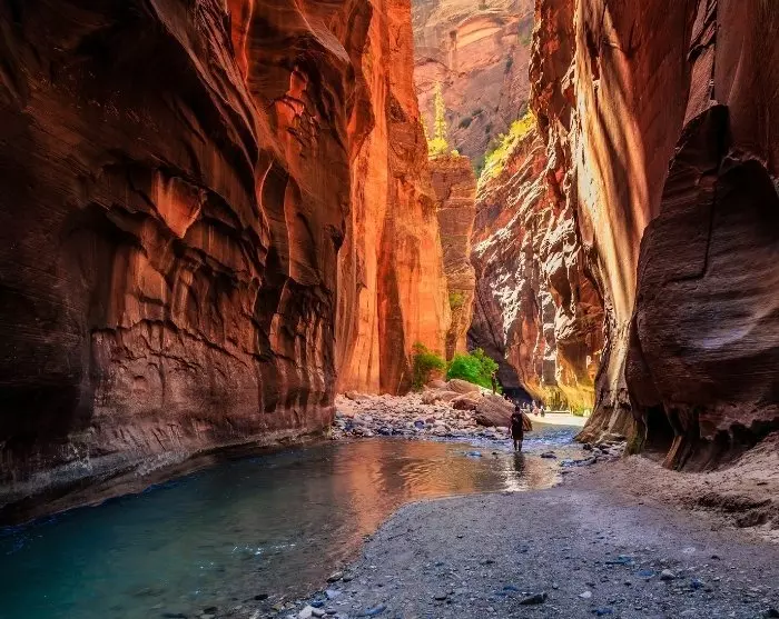 On your arrival at Zion National Park, you can make a stop at the Visitor Center, where you can check hiking routes, current weather conditions and transport options around the park itself. In the summer months, a free shuttle bus makes getting around easy, and you can just hop off at one of the popular hiking trails.