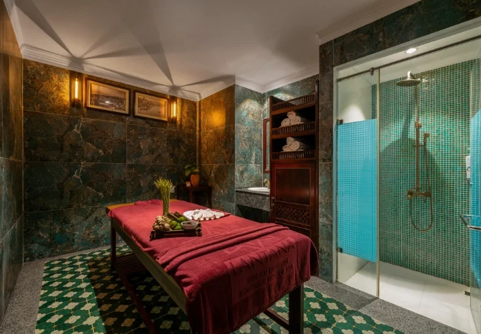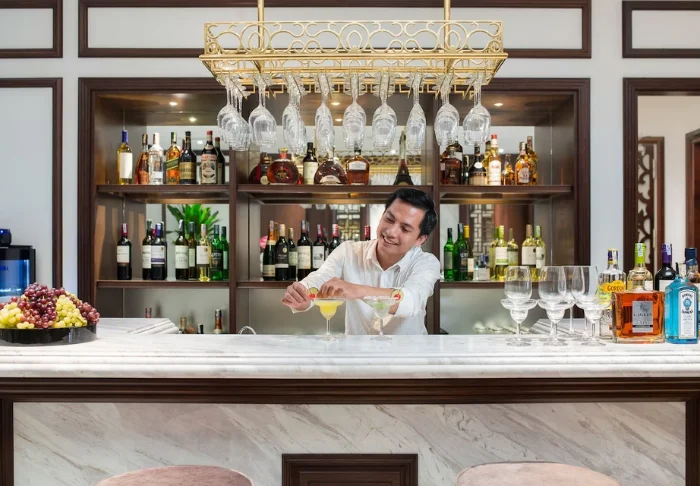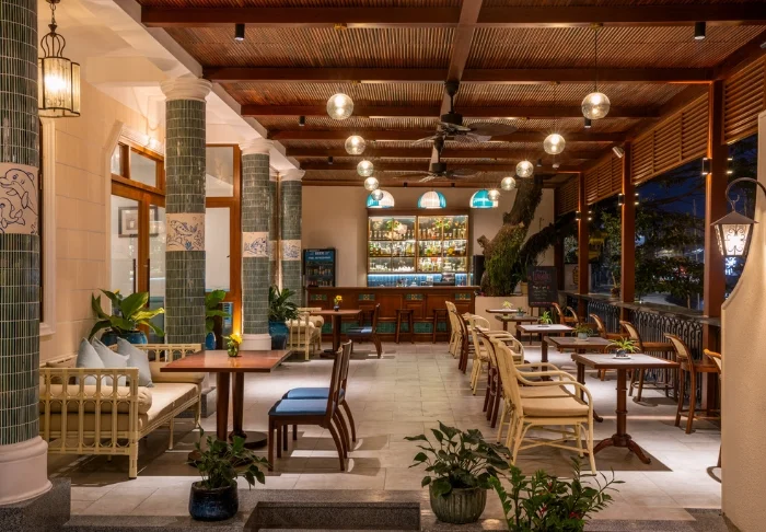 The hotel also boasts several bars, each with their own unique charm: Le 10° 19′ 44″, a tropical garden bar with a laid-back vibe serving the signature cocktail “Planteur de la Patronne”, and La Manufacture d’Opium, an Indochine-inspired lounge with a nostalgic atmosphere where you can sink into leather armchairs and enjoy a glass of Ricard, Khmer rum, or an exotic cocktail.