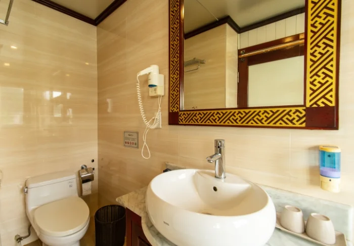 Mila Cruise whisks you away on an adventure amidst the spectacular scenery of Ha Long Bay, where limestone cliffs rise majestically from the emerald-green waters. On board this charming 47-metre-long boat with 22 cabins, you’ll be enveloped by the welcoming and warm ambience almost immediately.