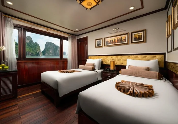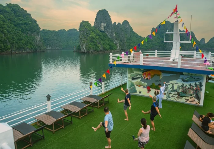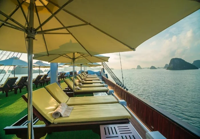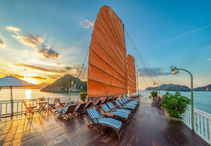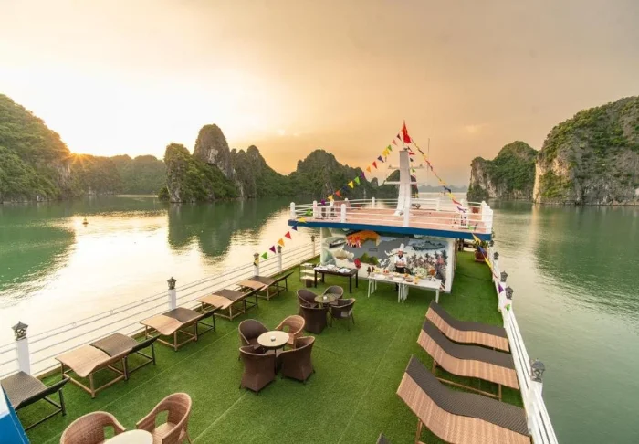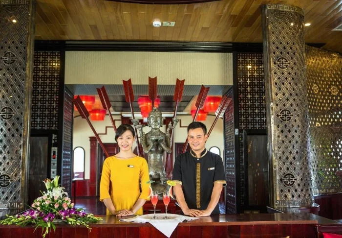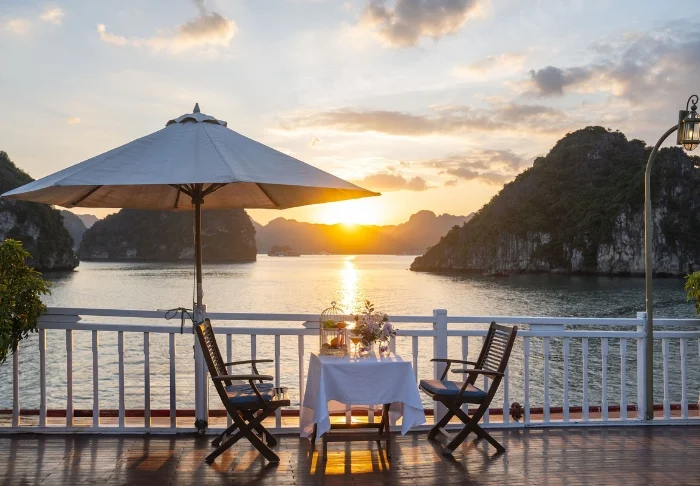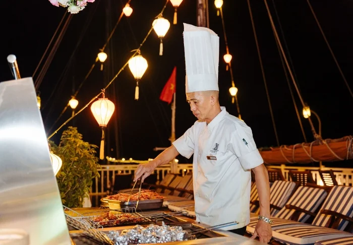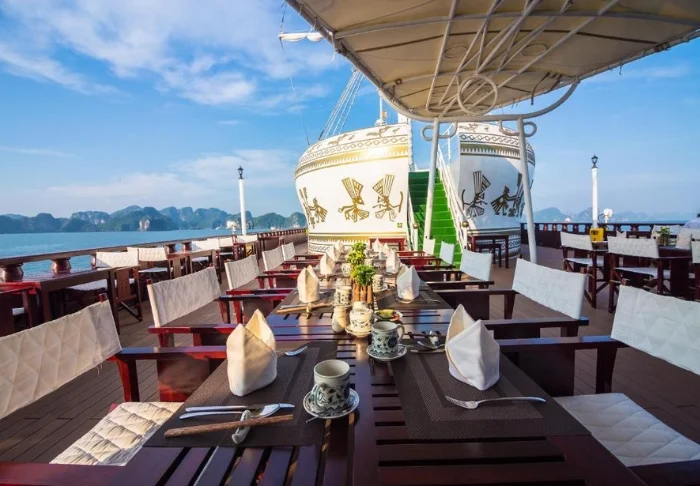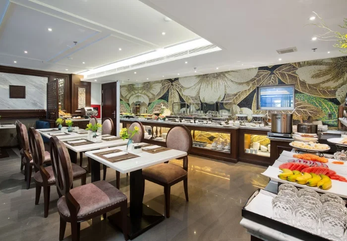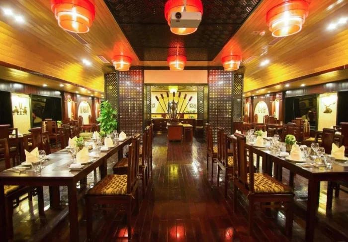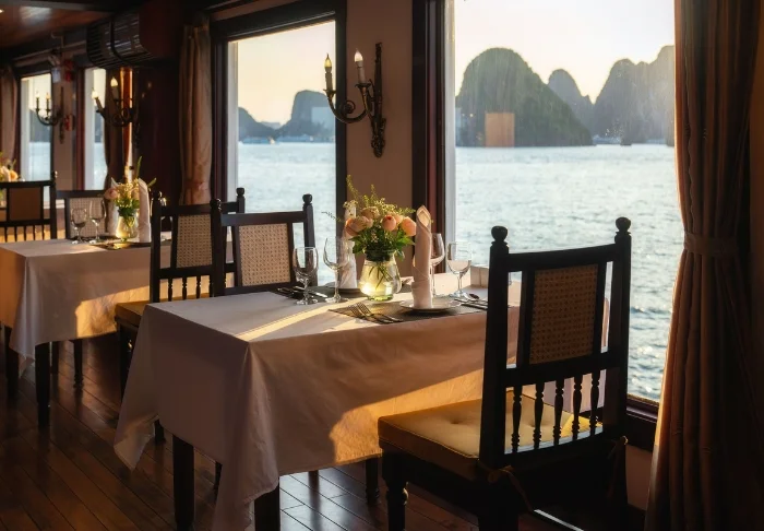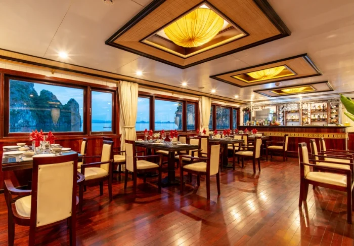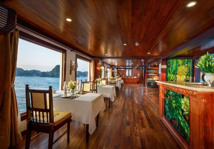 The restaurant offers a selection of both Vietnamese and international dishes, all prepared using high-quality ingredients. The ambiance is stylish, and dining on deck with the sunset as your backdrop is sure to be one of the highlights of your tour.