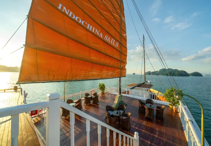 Indochina Sails takes the cruising experience in Ha Long Bay to another level. Aboard this elegant wooden ship, with just 23 cabins, you’ll instantly sense a truly exclusive ambience, where impeccable service, attention to detail, and atmosphere all work in perfect harmony. For decades, the ship has stood out among the most highly regarded in the bay and is famed for its exceptional standards.