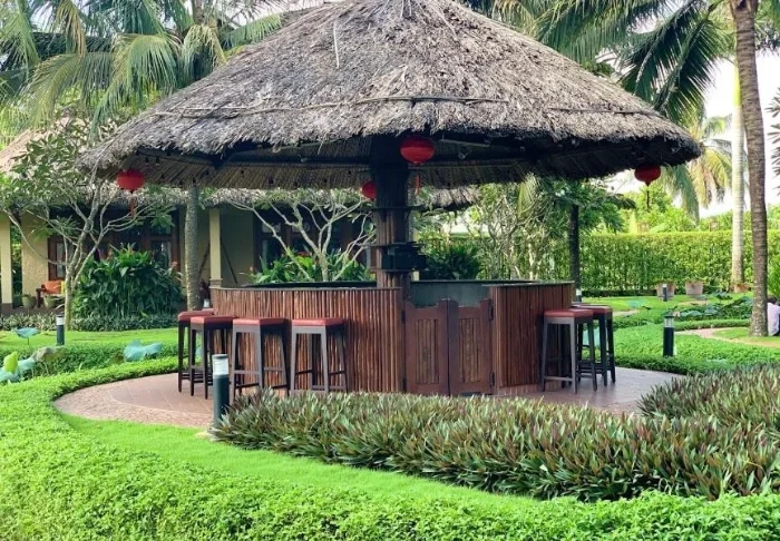 The resort has 3 restaurants. The main restaurant, Green Bay Restaurant, is an outdoor restaurant that all day serves dishes from both the East and the West, as well as delicious fish and shellfish dishes. The restaurant is also where the lavish breakfast buffet is served. Coral Bay Restaurant sits by the water’s edge and offers snacks and small, healthy dishes made with local ingredients. This is also where you can enjoy the sunset with a “sundowner” drink on the porch, and when dinner is served in the evening, the emphasis is on the Vietnamese kitchen. At the water’s edge, you will also find Rock Bay Restaurant and Bar, which focuses on fish, shellfish, global gastronomy and cocktails. What all the restaurants have in common is that they use organic ingredients, including herbs and vegetables from their own gardens.