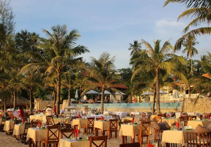The resort’s main restaurant, Le Café, serves a delicious breakfast buffet and à la carte dishes for lunch and dinner. Both international and authentic Vietnamese dishes are served. Le Salon in the lobby serves tea, coffee and cake as well as wine and cocktails. The pool bar, La Piscine, serves refreshing drinks and snacks, while at the beach bar you can enjoy a light lunch and a late afternoon drink while looking out over the beach with the waves gently lapping against the sand.