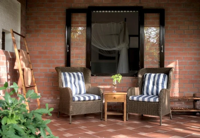 That beautiful, natural and rustic design can be found in the big, spacious rooms of at least 70 m² as well. All the rooms feature Wi-Fi, air conditioning, a ceiling fan, mini-bar, safe and a big, lovely bathroom with a hair dryer, bath robes as well as a shower and bathtub. From the terrace, you can enjoy the calm and the green surroundings.