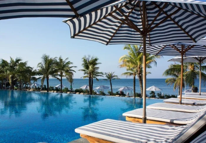 Under Mui Ne’s swaying coconut palms, you will find the Blue Ocean Resort, which has a fantastic location on Mui Ne’s white sandy beach that invites guests to relax and enjoy leisurely strolls to the sound of waves lapping against the shore. At the same time, restaurants, cafés and shops are close by, as the town’s main street runs just a few steps from the resort’s entrance.