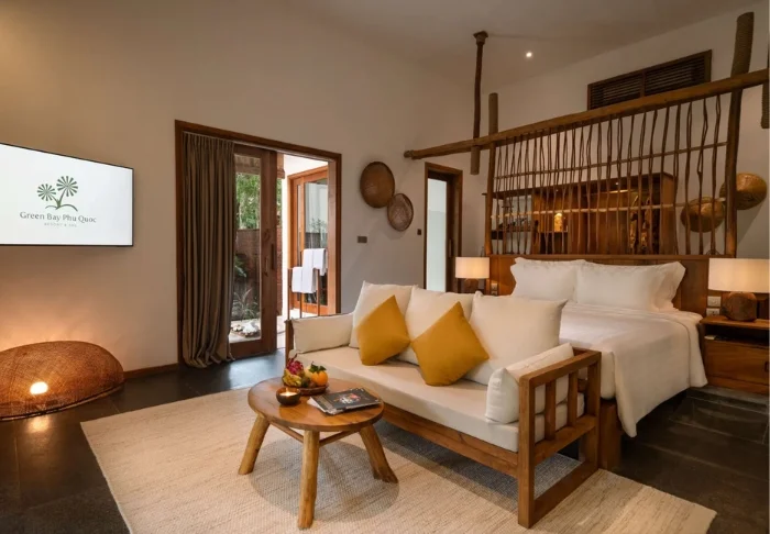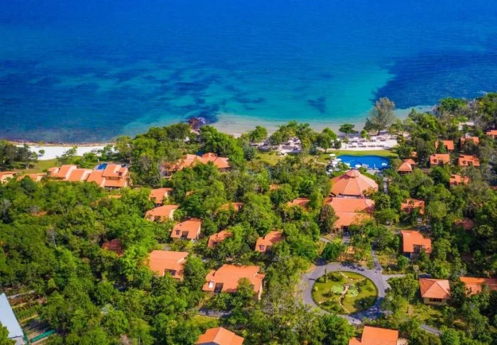 Green Bay Phu Quoc Resort & Spa is located at one of Phu Quoc’s best beaches on the western side of the island. The resort is situated in beautiful natural surroundings with a wealth of green vegetation, gardens, vegetable gardens, a dam, palm trees and a panoramic view of the Gulf of Thailand.