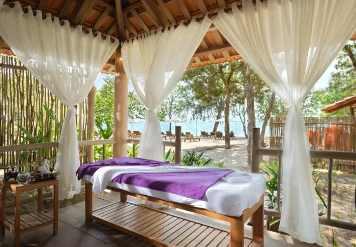 After a beautiful day in the sun, you can treat yourself to a relaxing treatment in the spa department, which is divided into small pavilions with partitions.