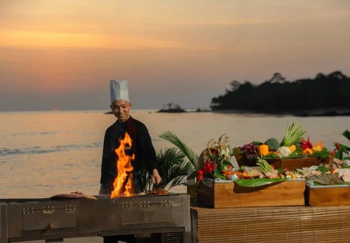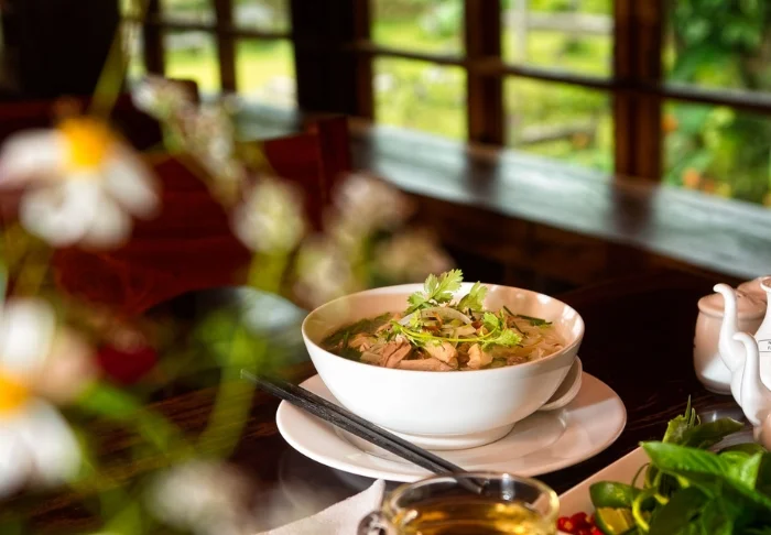 The restaurant, Le Comptoir de Marthe et Edouard, is named after the owner’s grandparents and offers a delightful fusion of Vietnamese and French cuisine. Chef Vo Quoc Thach leads the kitchen, creating a menu where local ingredients are paired with classic French techniques. You can savour these dishes on the terrace overlooking the river as the sun sets.