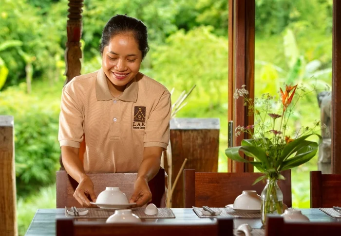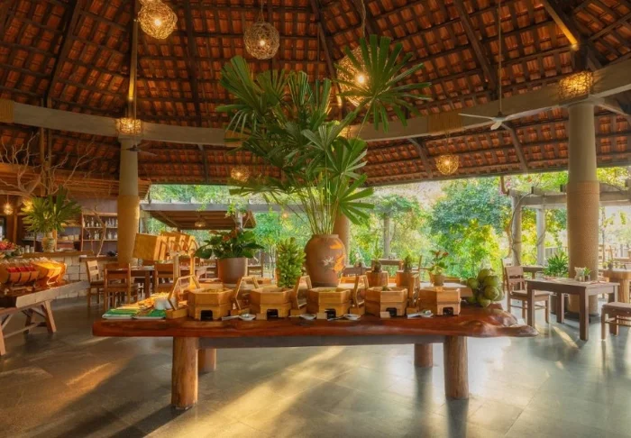 Y LAK Restaurant is more than just a place to eat – it’s an integral part of life at Lak Tented Camp. Set within a traditional wooden M’nong longhouse that has been lovingly restored, you can choose to dine in the spacious main hall or outside on one of two terraces with lake views. Here, you’ll enjoy fresh and healthy meals made with local ingredients, much of it straight from the camp’s own gardens brimming with coffee, cacao, fruit, and vegetables. The menu is straightforward and inspired by local culinary traditions, with a focus on authentic flavours. You won’t find a long list of international dishes, but what is offered is selected with care and prepared with real attention.