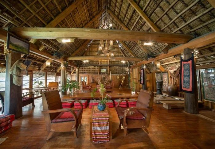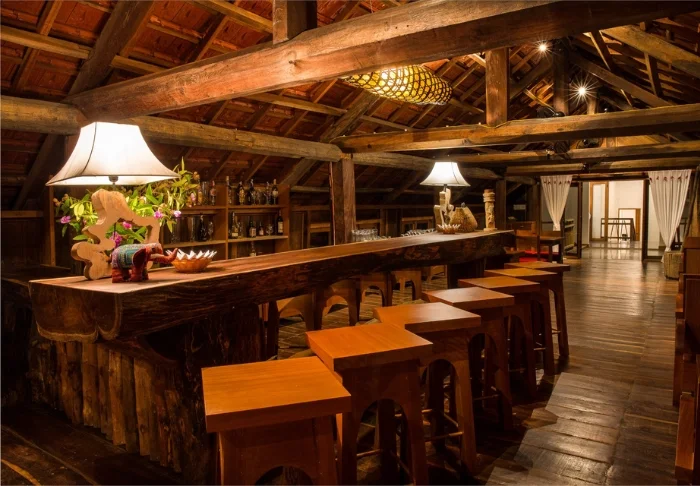 The resort is environmentally friendly and is built from natural and sustainable materials, and most of the interior of the resort is built from nice, dark wood at the resort’s own workshop.