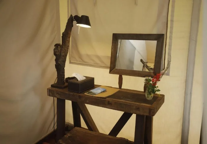 The tented camp nestles in verdant surroundings. Here, you’ll stay in one of the camp’s Lakeview Tents – spacious tents raised on stilts and thoughtfully designed in a simple, elegant style. Each tent offers 32 m², including a private veranda, and features either a double bed or two singles that can be joined together as needed. Amenities include air conditioning and a fan, bottled spring water, tea and coffee, as well as handy extras such as a torch, slippers, umbrella, and hairdryer. Every tent boasts its own en-suite bathroom with shower and toilet. The veranda is furnished with a handmade table and chairs, perfect for tranquil mornings overlooking the lake or lingering evenings in the dusk. The view itself, across the lake and rolling landscape, is an experience in its own right. You’ll feel a genuine sense of being at the very heart of nature.