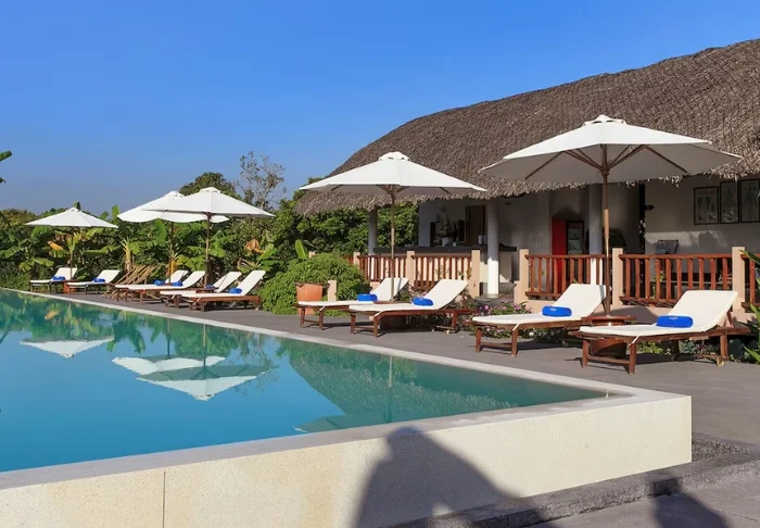 After a day filled with adventures, take a refreshing dip in the pool overlooking the rice fields or unwind with a good book in the shade of a palm tree.