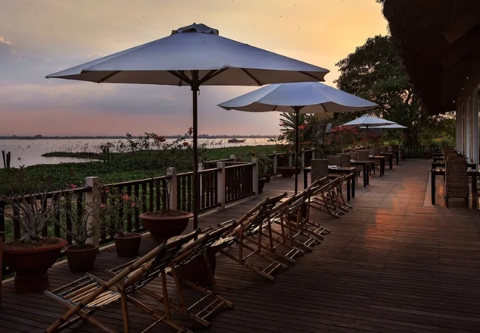 Round off your day with a drink at the bar as the sun sets over the Mekong.