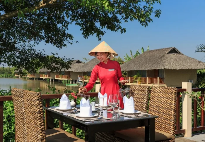 Mekong Riverside Boutique Resort & Spa is set right on the banks of the Mekong River in Cai Be. The resort features 25 bungalows with a total of 50 rooms, all nestled among lush orchards and verdant gardens. Here, you’ll find a peaceful retreat in the heart of the Mekong Delta’s lively daily life, surrounded by floating markets and small villages.