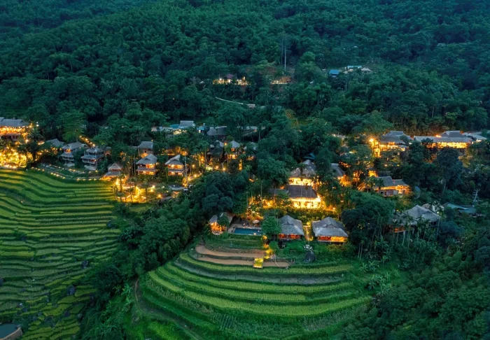 Pu Luong Retreat is located within the Pu Luong Nature Reserve. The retreat stretches along a mountainside overlooking picturesque rice terraces, valleys, and small villages, where you’ll be surrounded by nature, far removed from the hustle and bustle of city life.